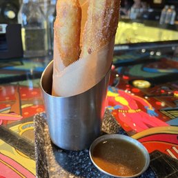 What An Amazing & Fun place. We came here from Las Vegas for a concert & to explore. We are Big foodies & love live entertainment in any form. This place did NOT disappoint! They had a Brady Bunch Brunch and it was such a fun vibe. Live DJ with projected Brady Bunch episodes playing in the background. The music was perfect and the DJ really was having fun. The food was also up to par and our server kept the Mimosas pouring! Food: We started with the Brussels sprouts & shishito peppers with their Drooling sauce! Not called that but that's how I can explain it.. Absolutely delightful, charred to the right amount and just plain incredible. Please order them! Next- Their smash burger. Wow! Perfect amount or meat to cheese to bun ration. Melts in your mouth with a great explosion of flavors. Not over powering but just Good! It was accompanied with fries, and they were perfectly crisp and fluffy.. I ordered a side of bacon and it literally elevated the burger, or you can eat them by themselves. Thick and crispy! Lastly, we had the churros for dessert- Our server recommended them and said they were on of the most popular desserts. Clearly I know why now! Overall my husband and I were very satisfied and full, we shared everything. The mimosas were not spectacular but they did the job to get us a little tipsy! Big shout out to our waiter/ sadly I can't remember his name :( He was always on top of keeping up with us LV Lushes! Check this place out, it's exactly as the Name describes. Eclectic, wacky, fun and full of joy! We loved our experience!!